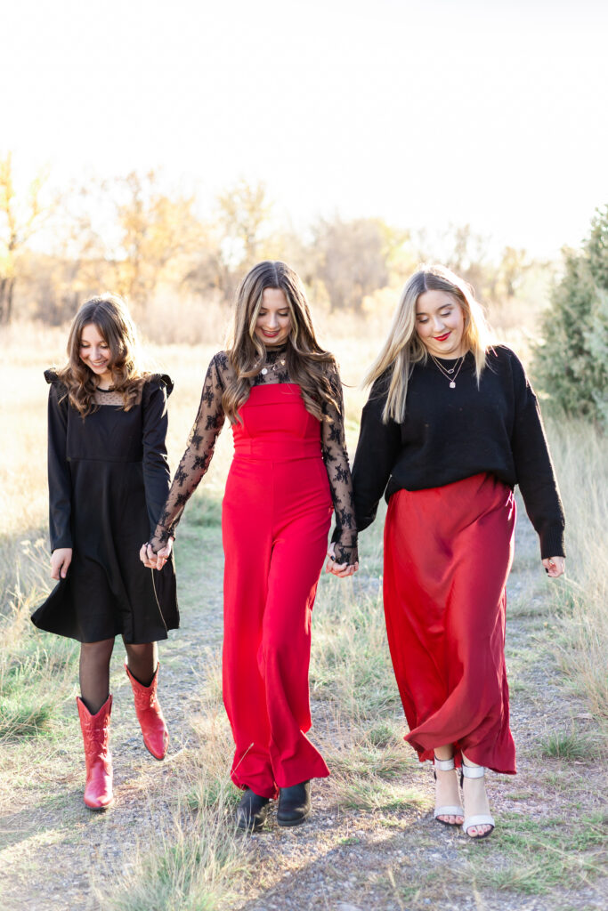 One of the many perks of being a KHP Spokesmodel is the opportunity to win more sessions. Aspen brought her two younger sisters for her sister session and Oh My! All three of them are GORGEOUS! They went with a Christmas theme of red and black outfits and finished off the outfits with a pop of red lipstick. It seems like all my sessions lately have been on cloudy days, but it felt as if the sun came out just for them. The golden glow warmed up the evergreens and gave such a dreamy background.